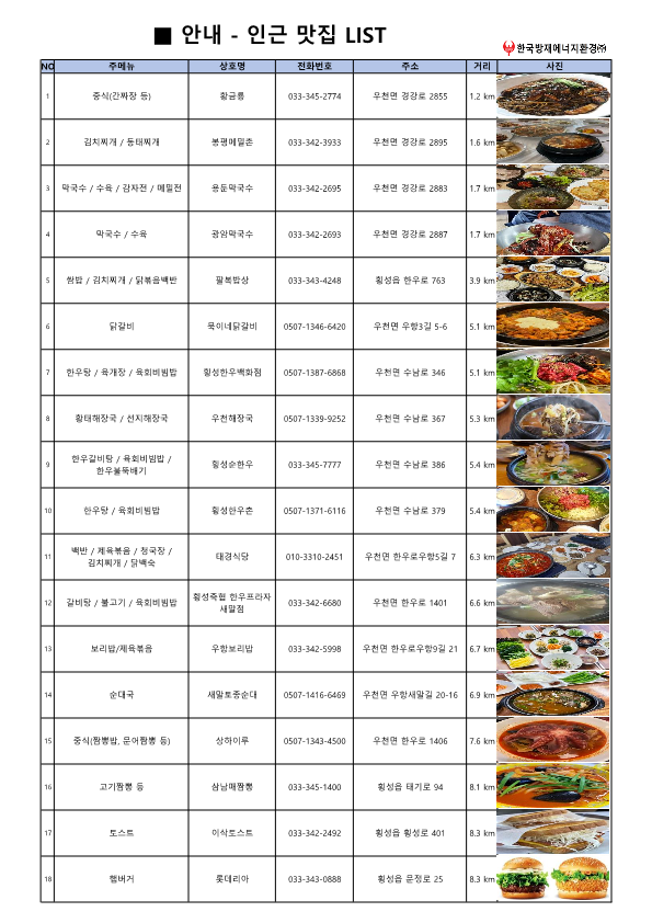 저희 시험기관을 방문해주신 의뢰자분들을 위해 인근 식당을 소개해드립니다.
